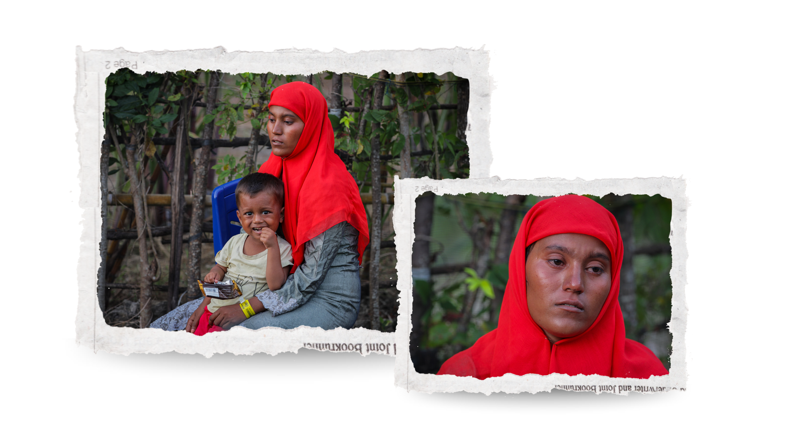 Though she first found refuge in the Cox's Bazar refugee camp, the harsh conditions and overcrowding forced her to flee again weeks later. She and her son then boarded a boat with others, uncertain of their destination.